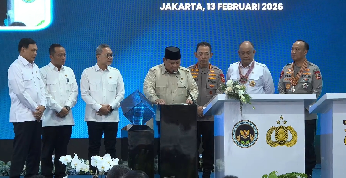 Presiden Republik Indonesia, Prabowo Subianto meresmikan 1.072 SPPG dan 18 gudang ketaganan pangan di Palmerah, Jakarta pada Jumat, 13 Februari 2026 hari ini.