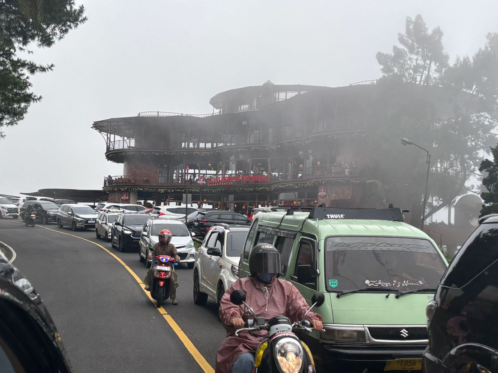 Arus lalu lintas di Jalur Wisata Puncak diberlakukan sistem satu arah atau one way menuju Jakarta pada Selasa, 30 Desember 2025, sekitar pukul 15.00 WIB.