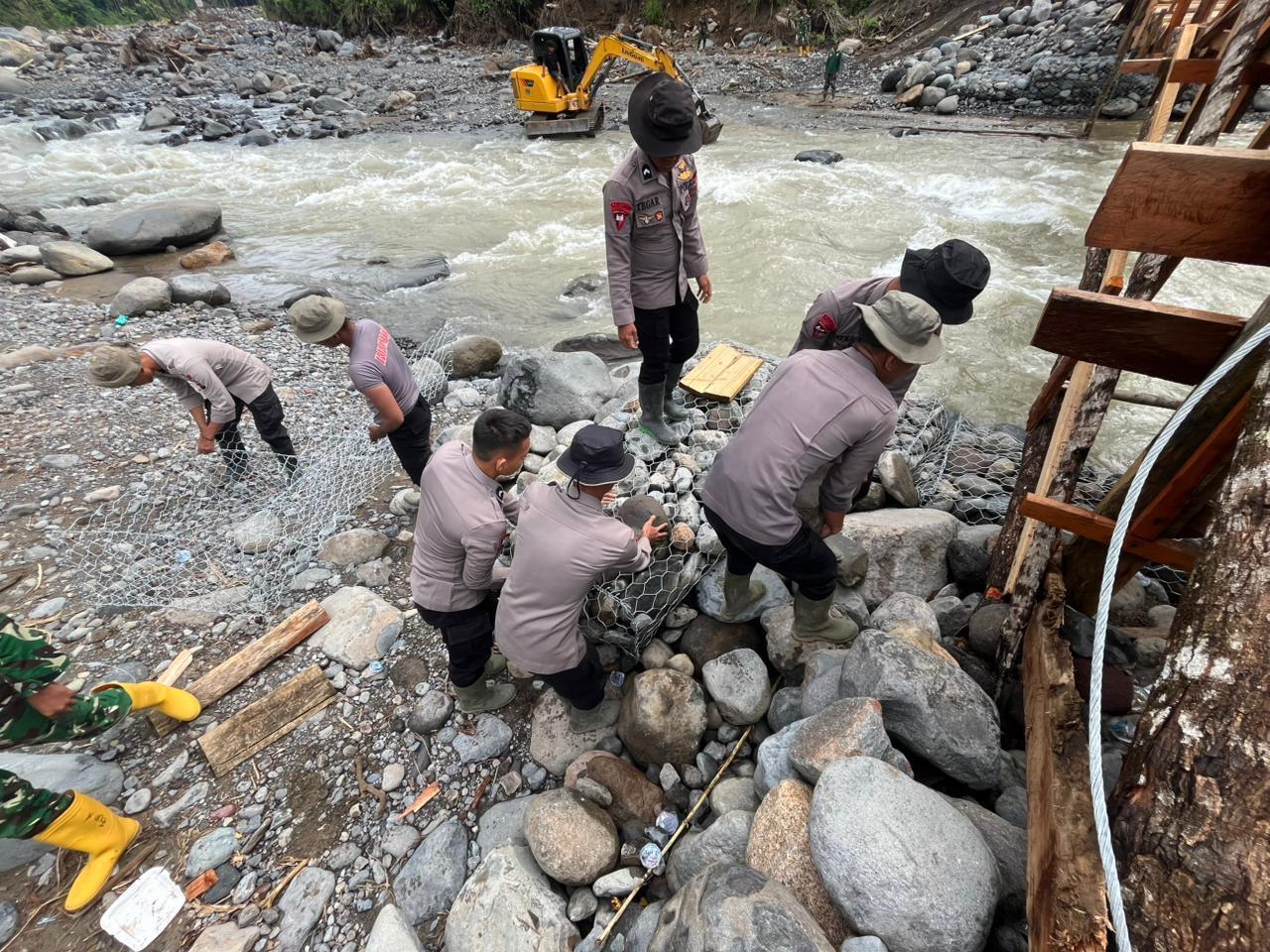 Upaya pemulihan infrastruktur di wilayah terdampak bencana di Sumatera Barat terus dikebut. Personel gabungan TNI dan Polri dikerahkan untuk membangun jembatan darurat di Nagari Malalak Selatan, Kecamatan Malalak, Kabupaten Agam, guna membuka kembali akses transportasi warga yang sempat terputus total.