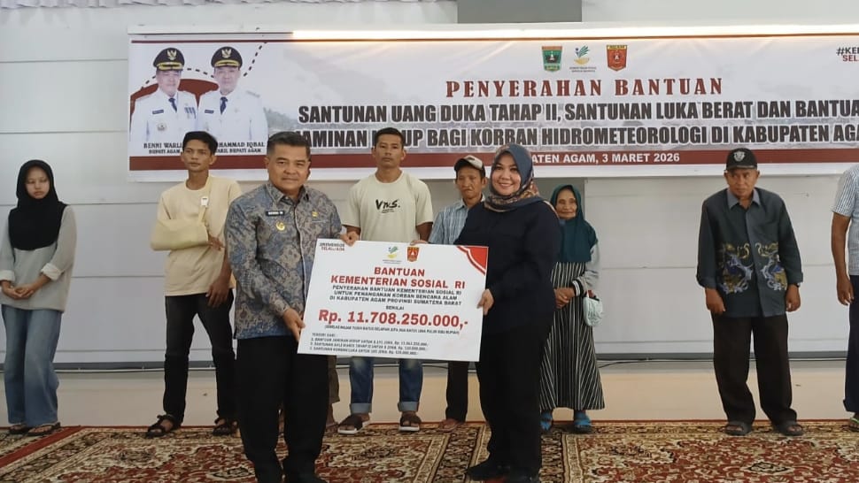 Kabupaten Agam: Rp11.708.250.000. Dana ini mencakup jaminan hidup untuk 8.195 orang, santunan ahli waris tahap II bagi 8 jiwa, serta santunan korban luka untuk 105 orang.