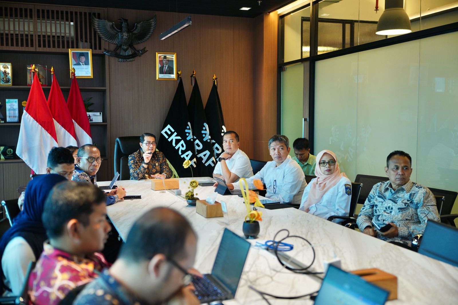 Audiensi tersebut juga dihadiri sejumlah pejabat Kementerian Ekraf, di antaranya Direktur Pengembangan Sistem Pemasaran dan Hubungan Kelembagaan Radi Manggala serta Tenaga Ahli Menteri Bidang Isu Strategis Gemintang Mallarangeng.
