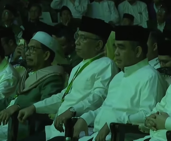 Ketua Umum Pengurus Besar Nahdlatul Ulama (PBNU) KH Yahya Cholil Staquf (Gus Yahya) (tengah). (sumber: Youtube/tvnu_id)