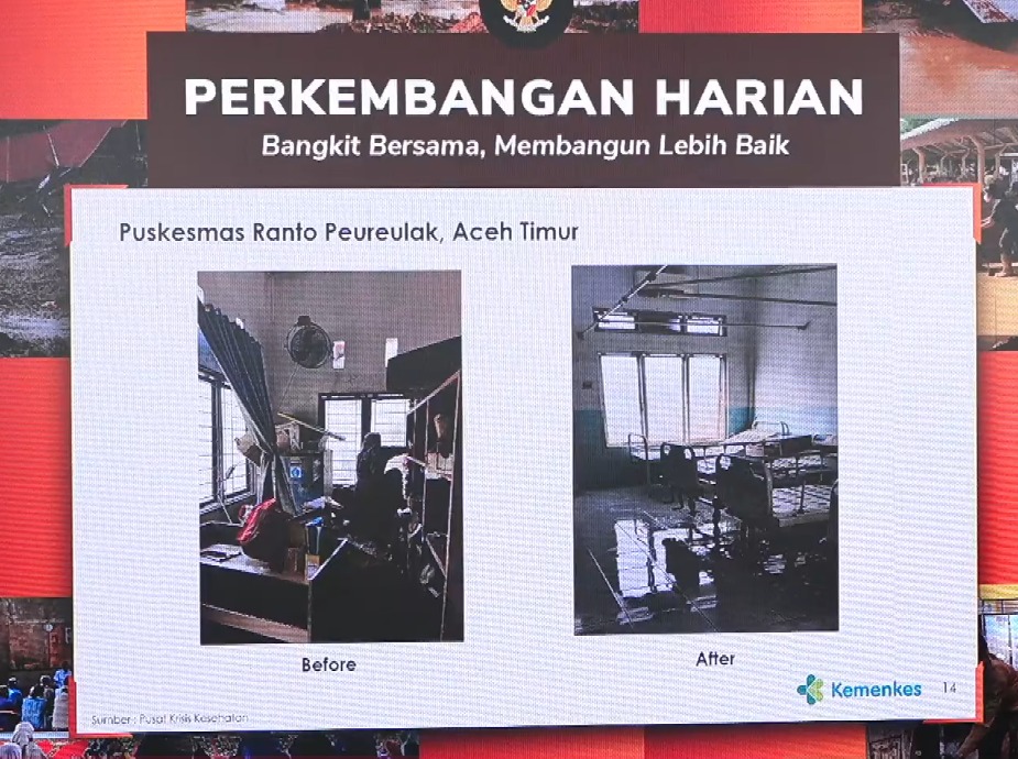 Ia mencontohkan beberapa rumah sakit yang sempat viral akibat terendam banjir, seperti rumah sakit di Aceh Tamiang dan Aceh Timur, kini telah kembali menjalankan layanan vital, termasuk hemodialisa atau cuci darah bagi pasien penyakit ginjal.