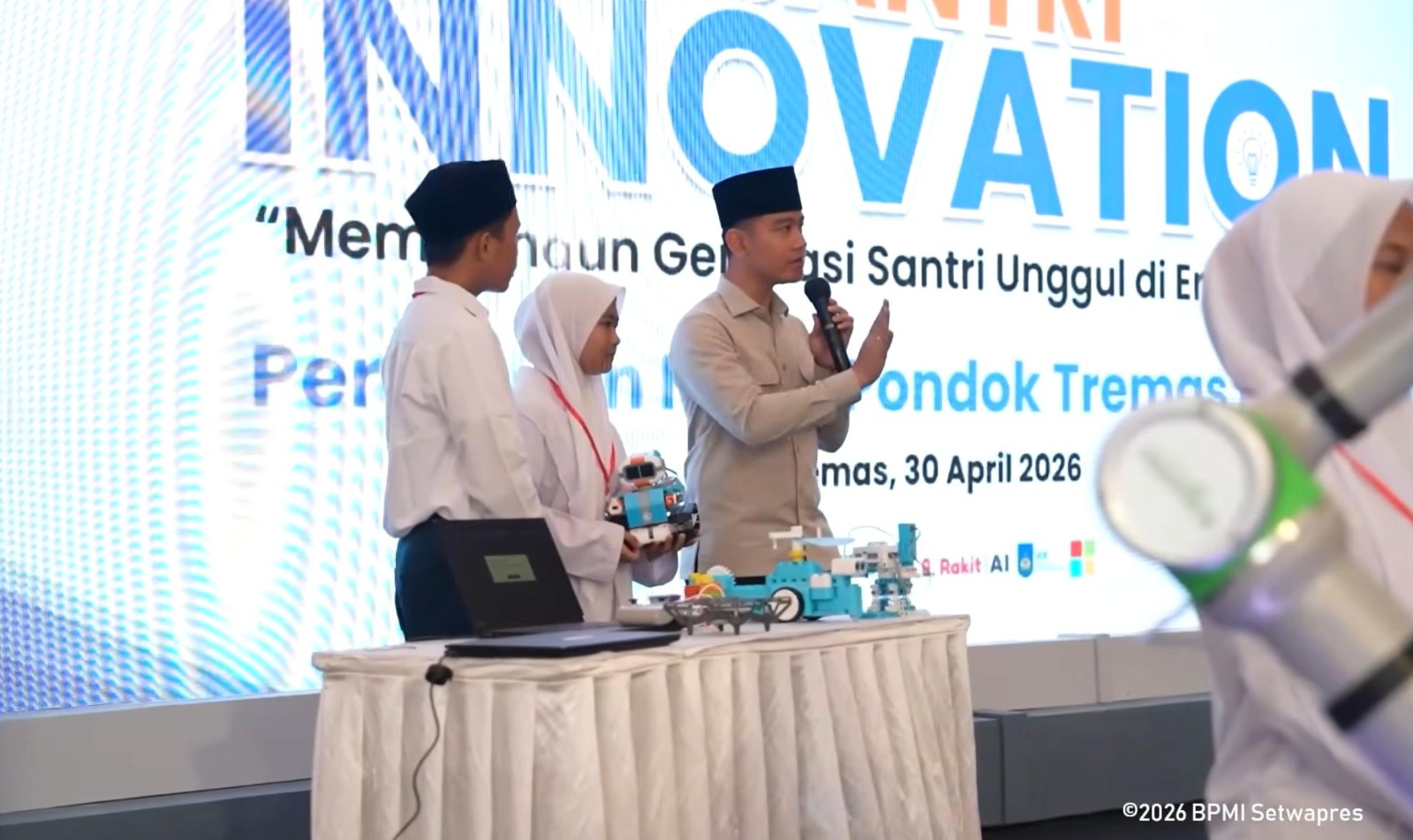 Wakil Presiden Gibran Rakabuming Raka mengunjungi Perguruan Islam Pondok Tremas untuk meninjau langsung pelatihan kecerdasan buatan (AI) dan robotika bagi para santri pada Kamis, 30 April 2026.