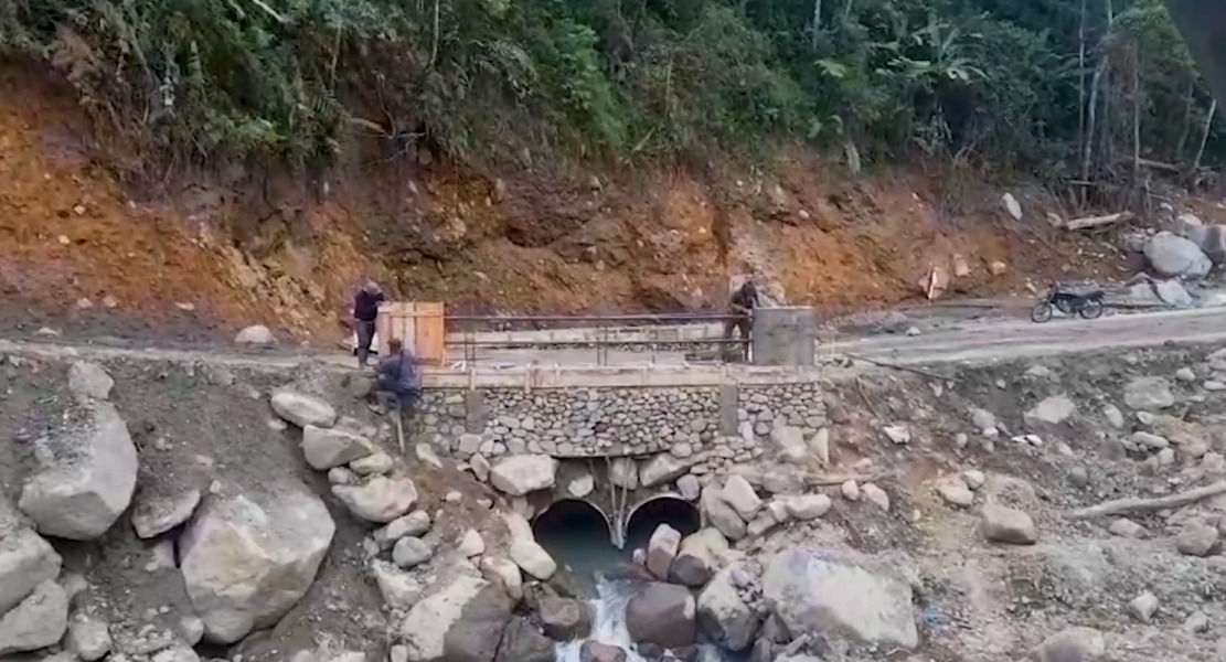 Sementara itu, di Desa Burni Pase 3, Kecamatan Permata, jembatan armco bahkan sudah bisa dilalui kendaraan roda empat. Meski telah difungsikan, petugas tetap melakukan pemadatan di sisi kiri dan kanan jembatan menggunakan campuran semen dan batu untuk meningkatkan kekuatan struktur.