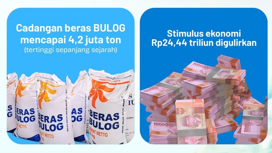 Guna memperkuat daya beli masyarakat, pemerintah pun telah menggulirkan stimulus ekonomi senilai Rp24,44 triliun serta menjaga cadangan beras BULOG tetap kuat di angka 4,2 juta ton.
