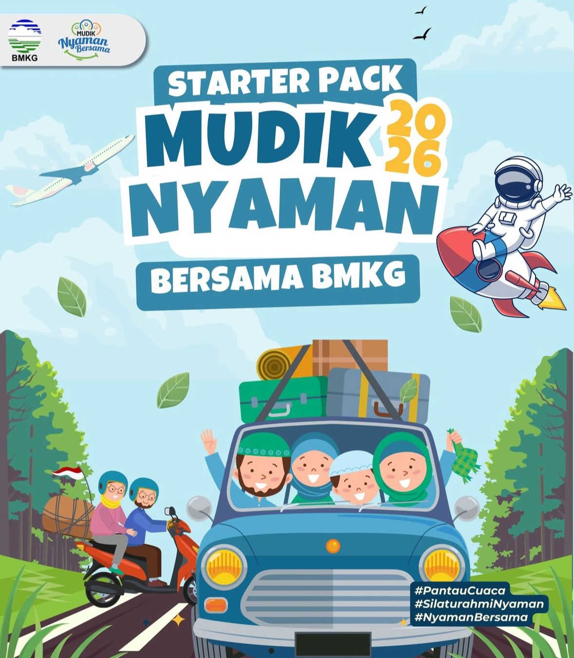 Badan Meteorologi, Klimatologi, dan Geofisika (BMKG) membagikan panduan perjalanan bertajuk “Starter Pack Mudik Nyaman Bersama BMKG” bagi masyarakat yang akan melakukan perjalanan mudik Lebaran. Informasi tersebut disampaikan melalui unggahan akun Instagram resmi @infobmkg pada Sabtu, 14 Maret 2026.