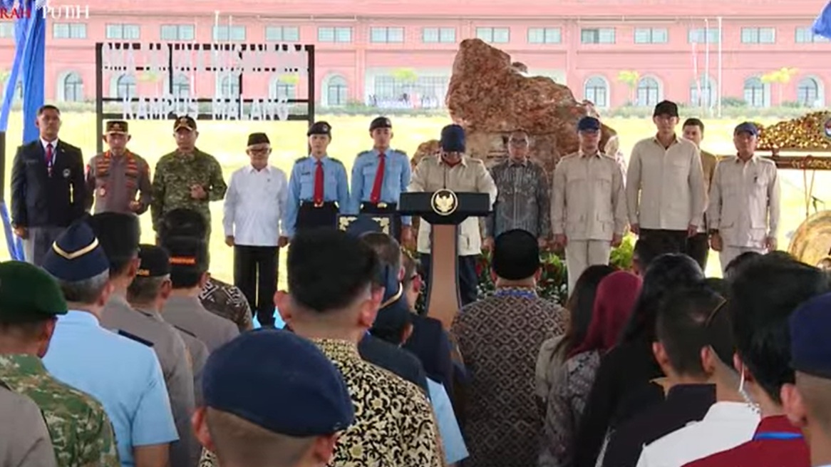 Presiden Republik Indonesia, Prabowo Subianto, meresmikan Kampus SMA Taruna Nusantara di Kecamatan Pagak, Kabupaten Malang, Jawa Timur, pada Selasa 13 Januari 2026.
