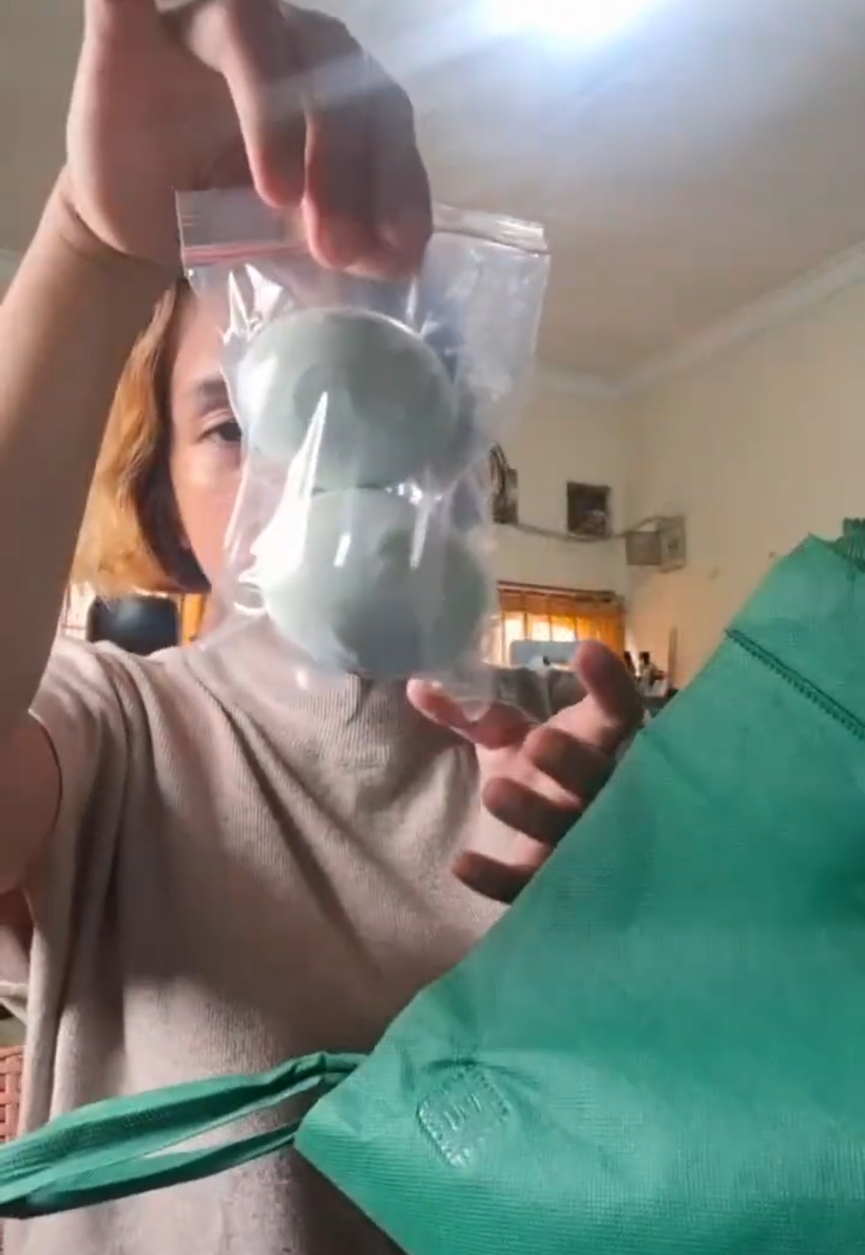 Dalam rekaman tersebut, ia membuka tote bag berwarna hijau yang berisi sejumlah bahan makanan. Sambil menunjukkan isinya satu per satu, ia mengaku belum mengetahui detail paket yang diterima.
