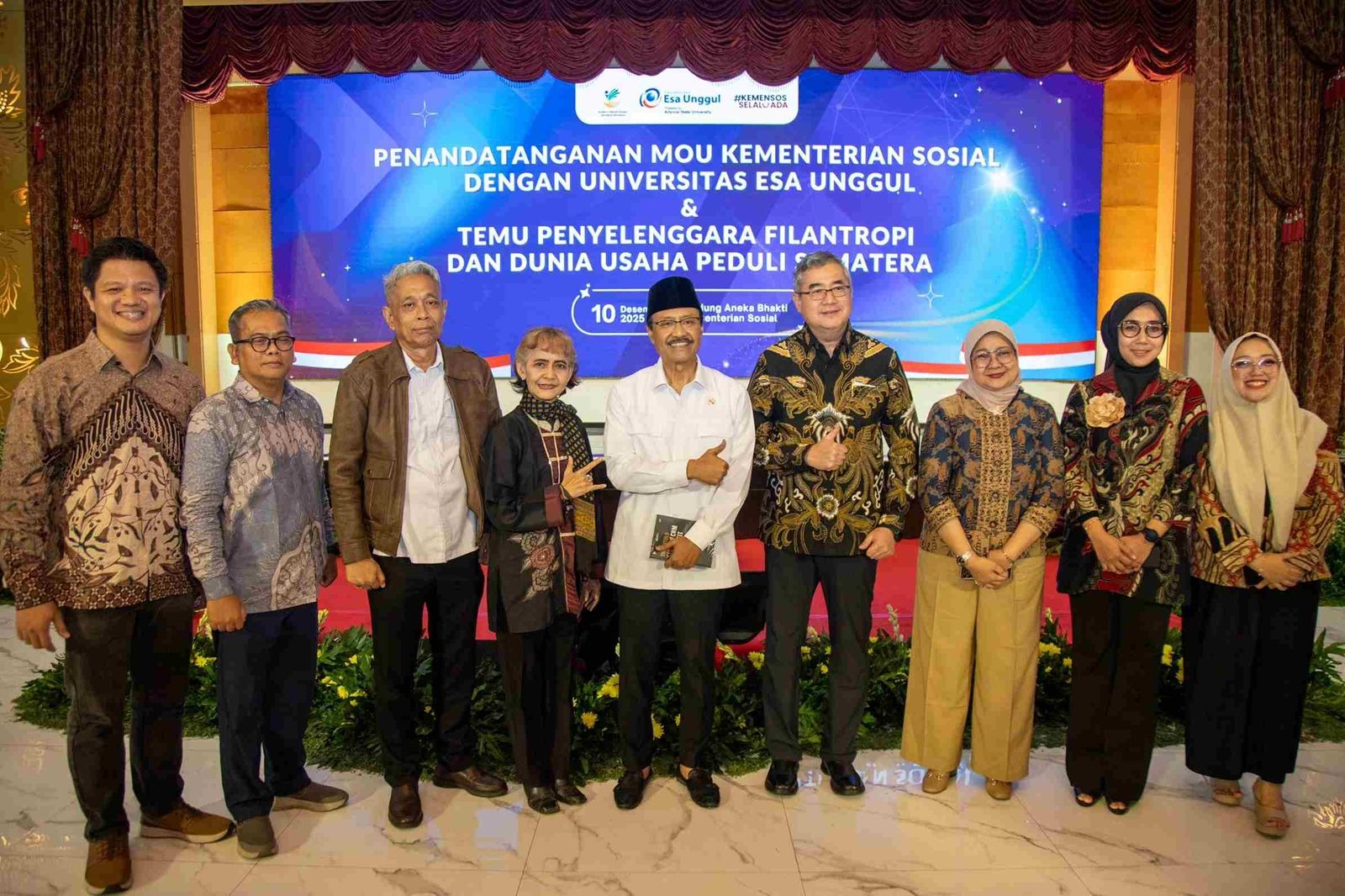 Kementerian Sosial (Kemensos) bersama puluhan lembaga filantropi dan dunia usaha berhasil mengumpulkan dana bantuan senilai Rp196 miliar untuk warga terdampak bencana di Aceh, Sumatera Utara, dan Sumatera Barat. Penggalangan donasi ini diumumkan dalam acara Penandatanganan MoU Kemensos–Universitas Esa Unggul serta Temu Penyelenggara Filantropi dan Dunia Usaha Peduli Sumatera di Gedung Aneka Bakti Kemensos, Kamis, 10 Desember 2025.