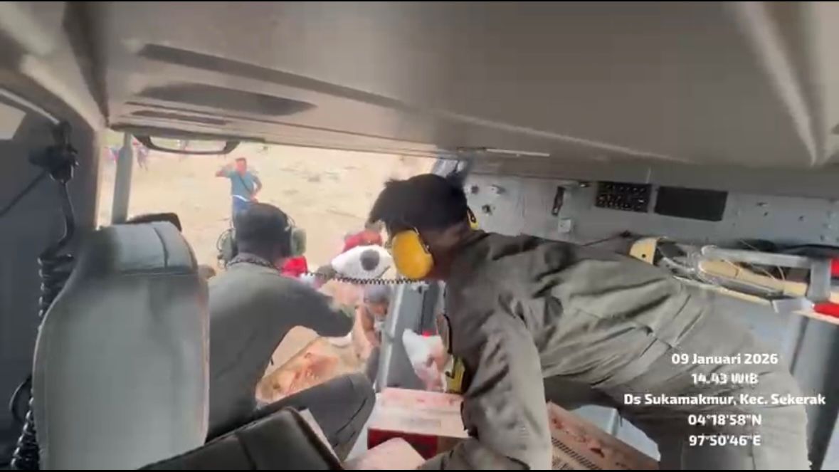 TNI Angkatan Laut terus menunjukkan komitmennya dalam mendukung tugas kemanusiaan dan membantu masyarakat di wilayah terdampak kebutuhan logistik. Melalui unsur udara, TNI AL melaksanakan dorongan logistik menggunakan Pesawat AS 565 MBe Panther dengan nomor lambung HS-1307 ke Desa Sukamakmur, Kecamatan Sekerak, Kabupaten Aceh Tamiang, pada Jumat 9 Januari 2026.