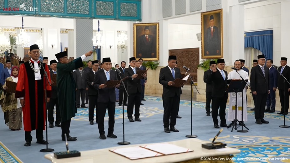 Presiden Republik Indonesia, Prabowo Subianto, memimpin upacara pengucapan sumpah jabatan bagi sejumlah pejabat negara di Istana Negara, Jakarta, pada hari ini, Jumat, 10 April 2026. Agenda tersebut meliputi pengangkatan Hakim Konstitusi, Anggota Ombudsman RI masa jabatan 2026-2031, serta Duta Besar Luar Biasa dan Berkuasa Penuh (LBBP) RI.