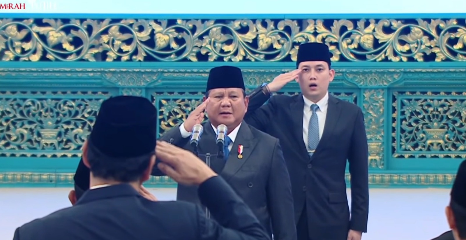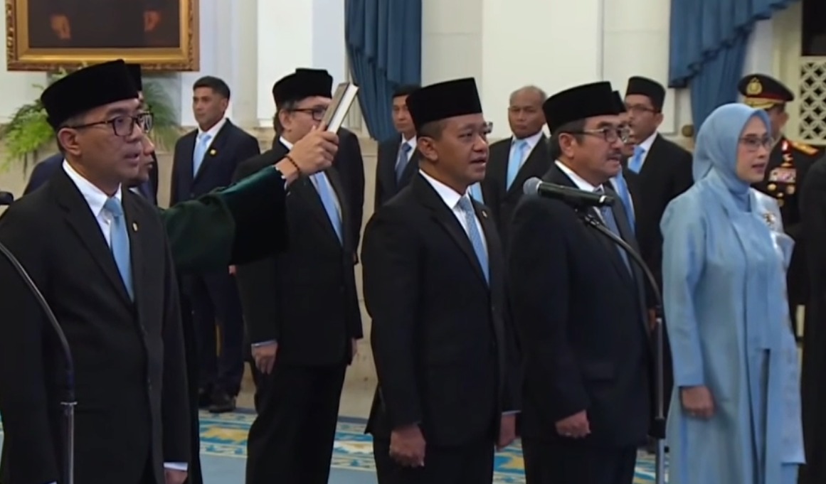 Para pejabat yang dilantik mengucapkan sumpah jabatan yang dipimpin langsung oleh Presiden Prabowo.
