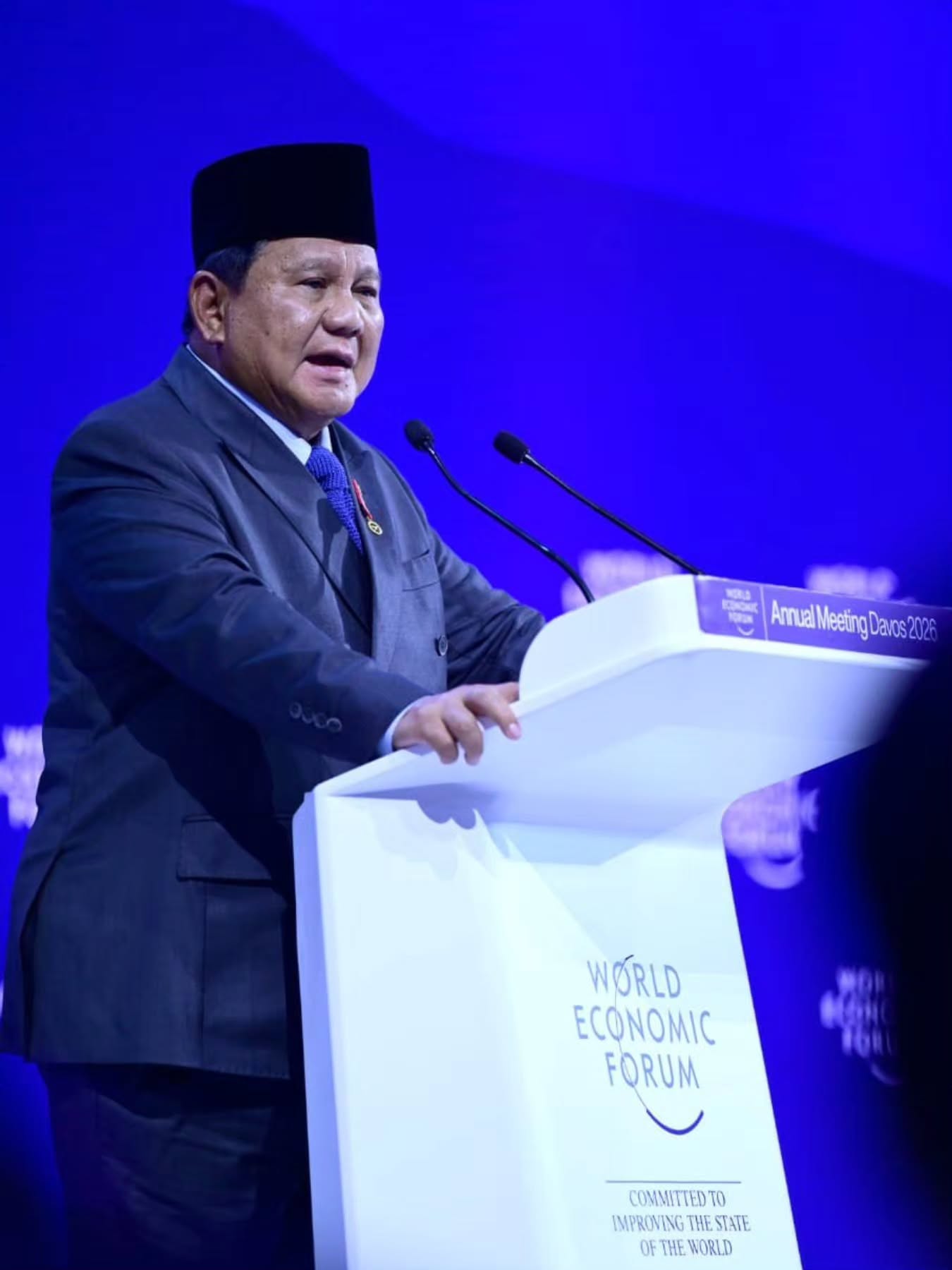 Dalam pidato kunci di WEF, Presiden memaparkan konsep ekonomi “Prabowonomics” serta capaian satu tahun pemerintahan, termasuk program Makan Bergizi Gratis yang menjangkau 59,8 juta penerima dan Cek Kesehatan Gratis dengan 70 juta penerima. Sebanyak 166 sekolah rakyat dibangun dan 288.000 papan interaktif digital disalurkan untuk mendukung pendidikan nasional.