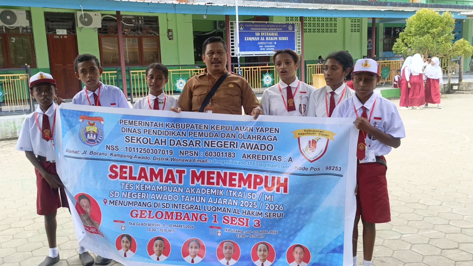 Kepala SD Negeri Awado, Muhajir, mengungkapkan bahwa sekolahnya harus bergabung dengan SD Integral Lukman Al Hakim Serui sebagai lokasi pelaksanaan TKA. Perjalanan menuju lokasi tidak mudah, karena guru dan murid harus menyeberangi laut menggunakan perahu.