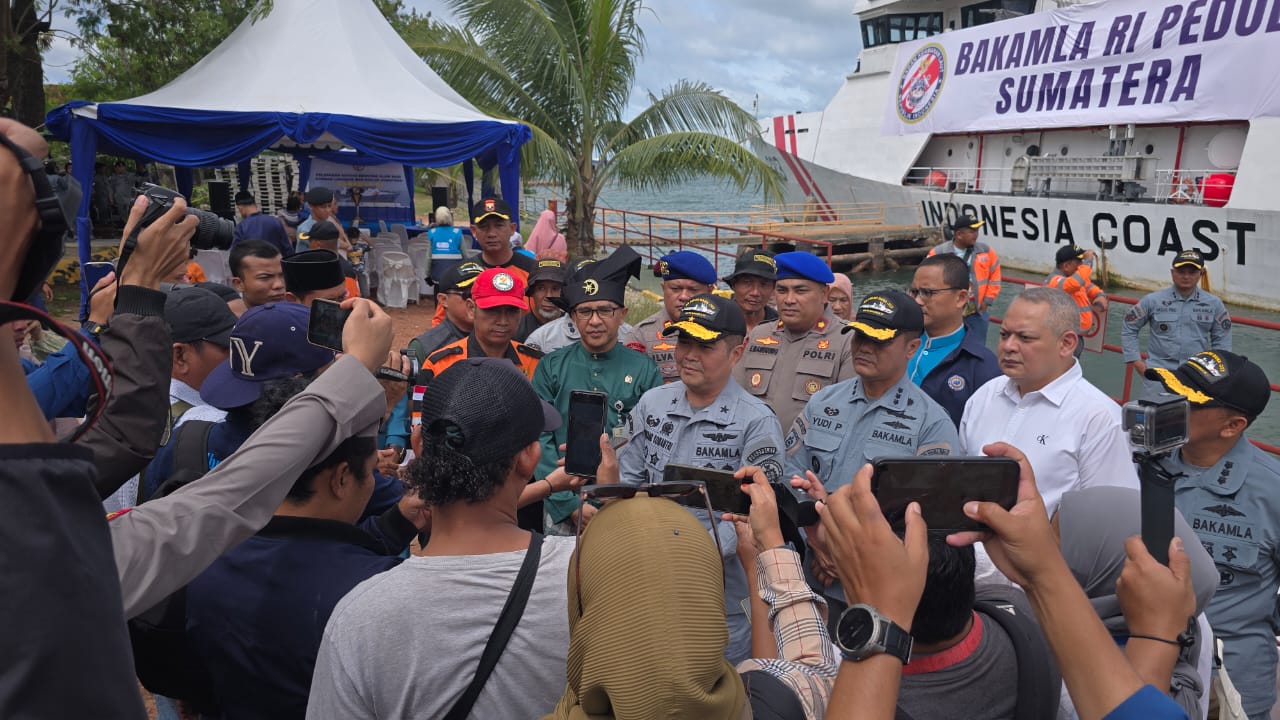 Direktur Operasi Udara Maritim Bakamla RI, Laksma TNI Bambang Somantri, S.I.P., M.Si., yang melepas keberangkatan kapal, menyampaikan prihatin mendalam atas musibah banjir yang melanda Aceh, Medan, dan Padang.
