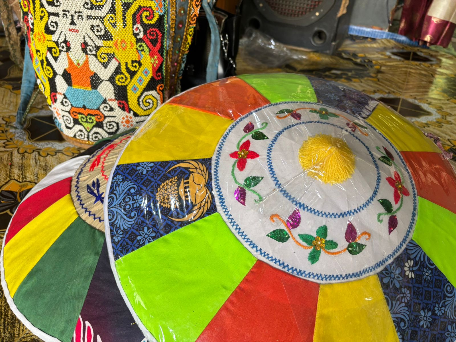 Selain aban dan taplak meja, Norfi juga memproduksi topi, saung, serta berbagai aksesoris berbahan manik-manik yang dijual dengan harga mulai dari Rp200 ribu hingga Rp300 ribu. Menurutnya, produk-produk kecil justru paling diminati pembeli.