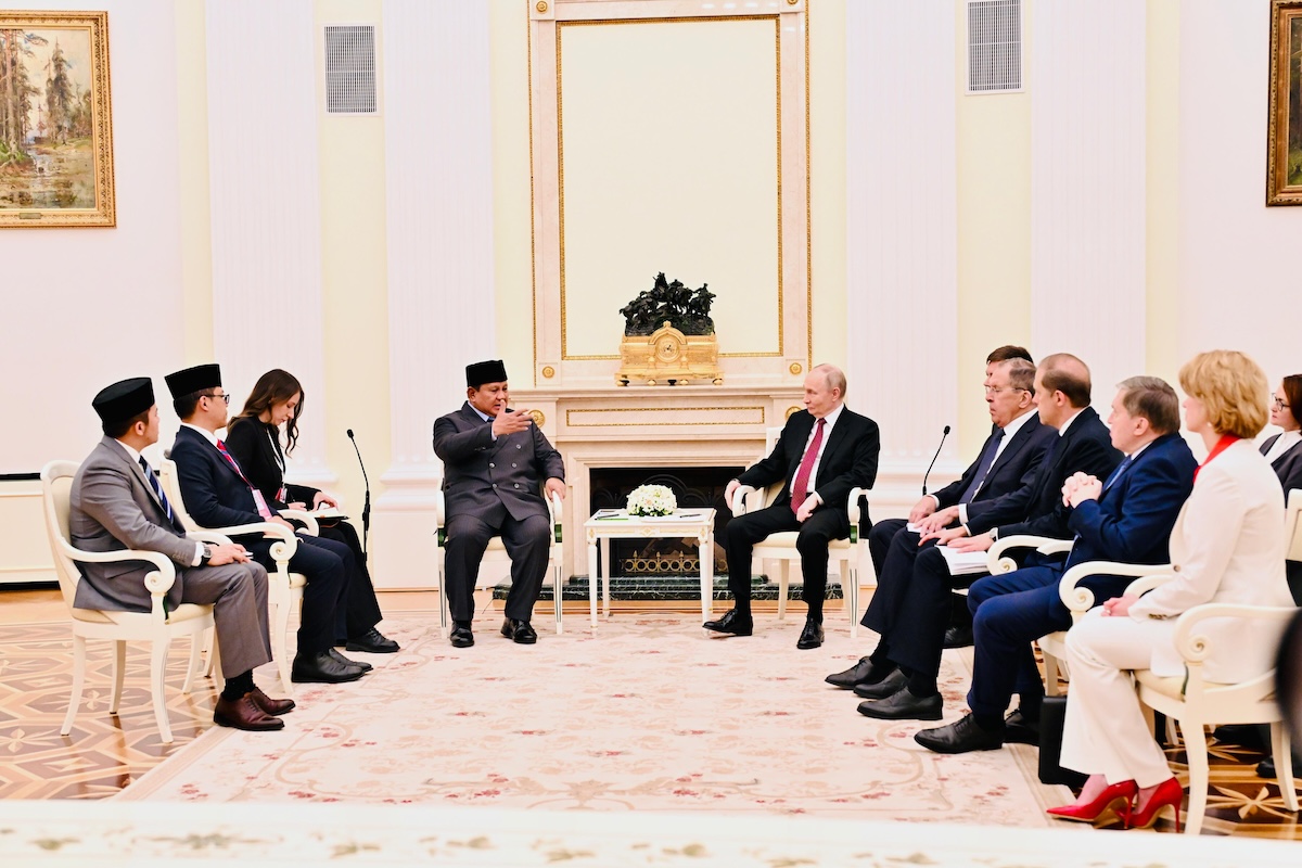 (Presiden Republik Indonesia Prabowo Subianto ketika melakukan pertemuan bilateral dengan Presiden Federasi Rusia Vladimir Putin di Kremlin, Moskow, pada Desember 2025. (Foto: BPMI Setpres))