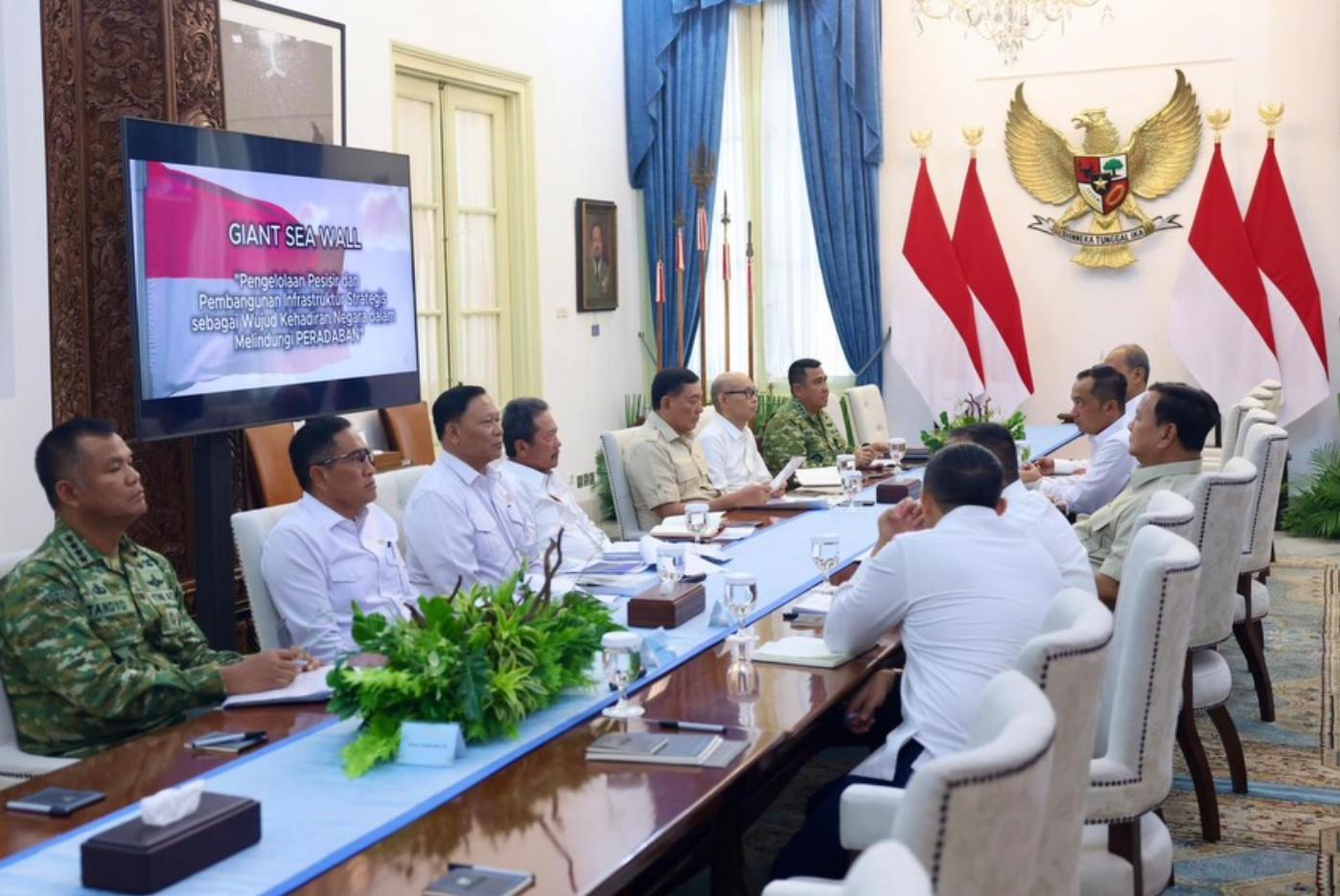 Wakil Menteri Kelautan dan Perikanan Didit Herdiawan menghadiri rapat terbatas bersama Presiden Prabowo Subianto dan jajaran Kabinet Merah Putih di Istana Negara, Jakarta, Senin 20 April 2026. Pertemuan tersebut secara khusus membahas perkembangan proyek strategis pembangunan Tanggul Laut Raksasa atau Giant Sea Wall.