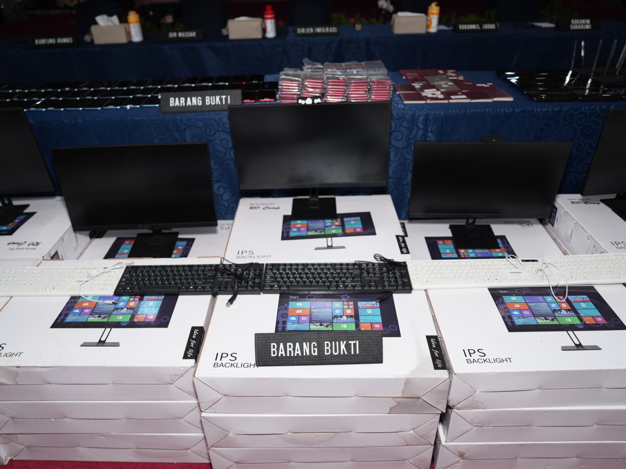 Dari hasil pengamanan, petugas menyita sejumlah barang bukti berupa 50 unit komputer, 150 unit telepon genggam, serta perangkat jaringan seperti router, switch hub, dan kabel LAN yang diduga digunakan untuk menjalankan aktivitas penipuan daring secara terorganisir.